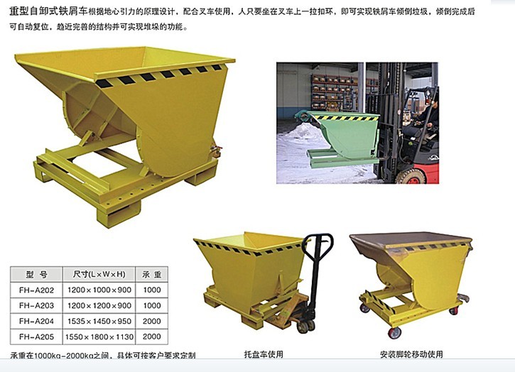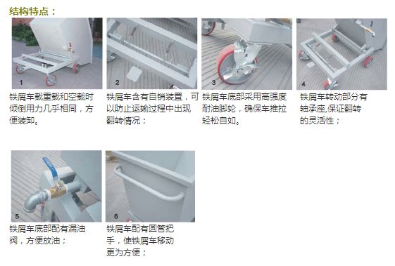 2、鐵屑車含有自鎖裝置,可以防止運輸過程中出現(xiàn)翻轉(zhuǎn)情況;