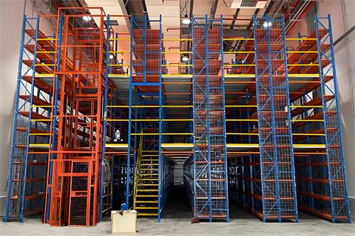 5、下層是貨架形式,上層可以是平臺也可以是貨架的結構。底層貨架既可以存儲物料又是樓面的支撐,極具靈活性。